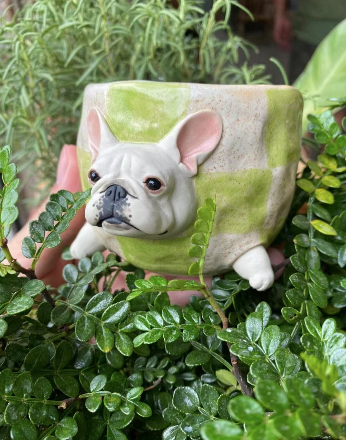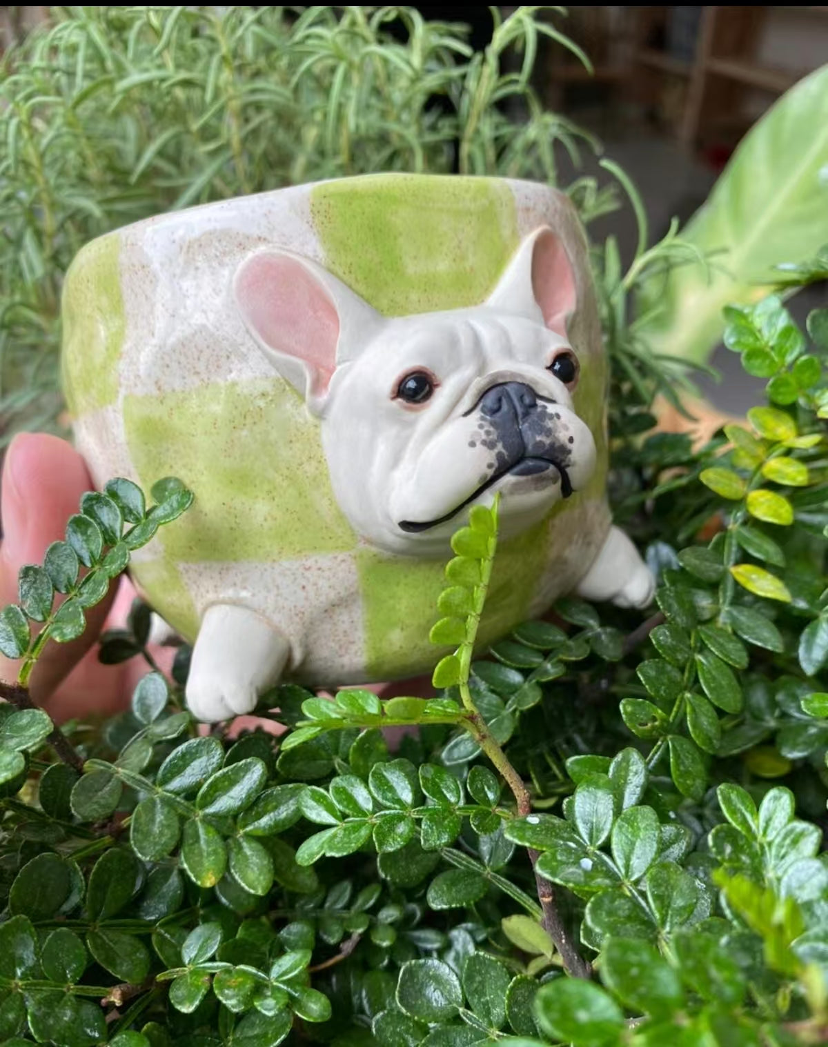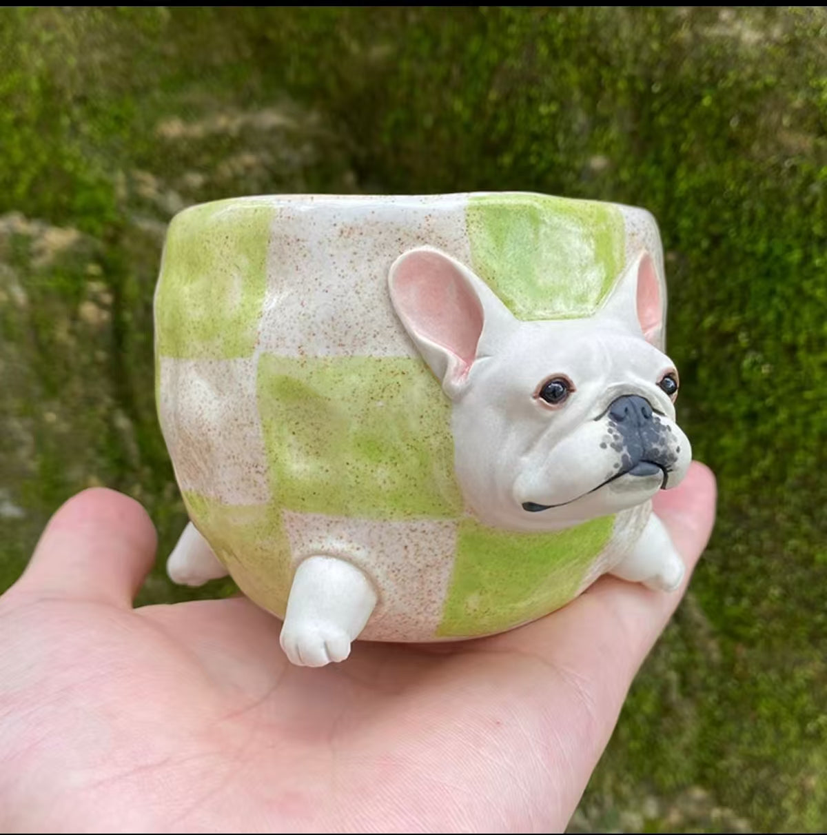 This cup combines a fresh green checkered pattern with a white French Bulldog, offering a refreshing and delightful look. Carefully handcrafted by skilled artisans, each cup showcases unique artistry and character. Perfect for animal lovers and those who appreciate handcrafted pieces, it’s an excellent choice for any drink or as a special gift that adds a fresh charm to your collection.